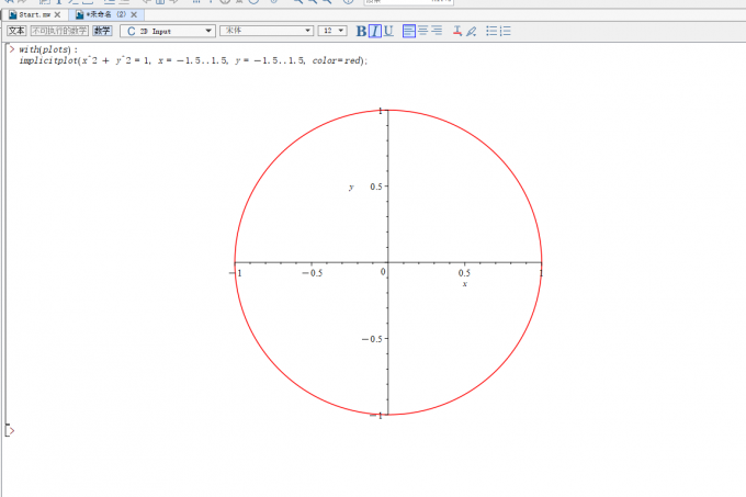 除了上面的几种图像外,我们还可以绘制隐函数的图像,在Maple中使用【implicitplot函数】便能绘制。例如,我们要绘制单位圆,可以使用以下命令: